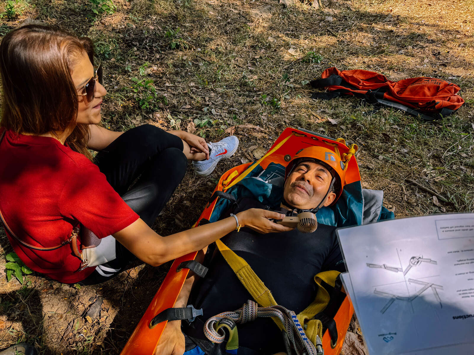 The transformation deepened during our signature Tham Luang Highline experience. Together, the team constructed a rope bridge similar to the one used in the Thai Cave Rescue. They supported one another in connecting their GM to the rope bridge and pulling him across in a rescue stretcher.